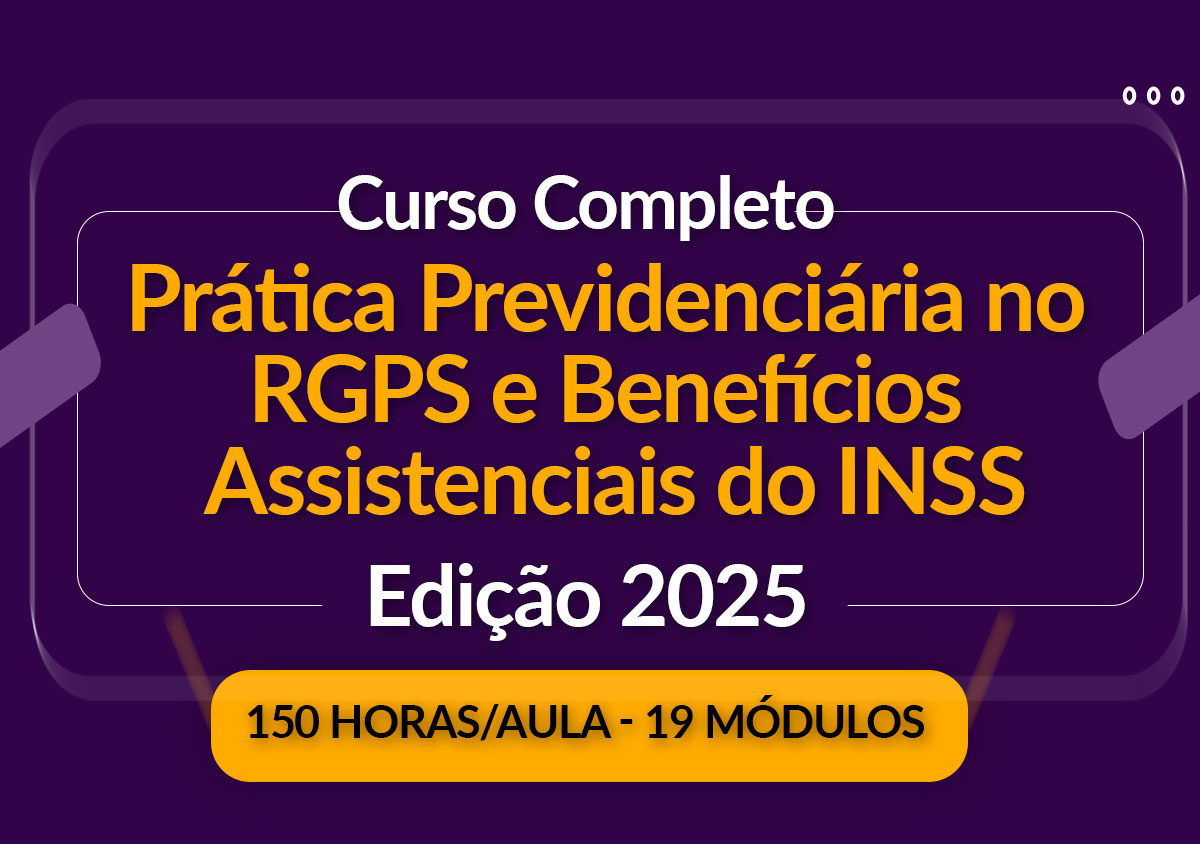 CURSO COMPLETO DE PRÁTICA PREVIDENCIÁRIA NO RGPS E BENEFÍCIOS ASSISTENCIAIS DO INSS EDIÇÃO 2025 | 150 HORAS/AULA